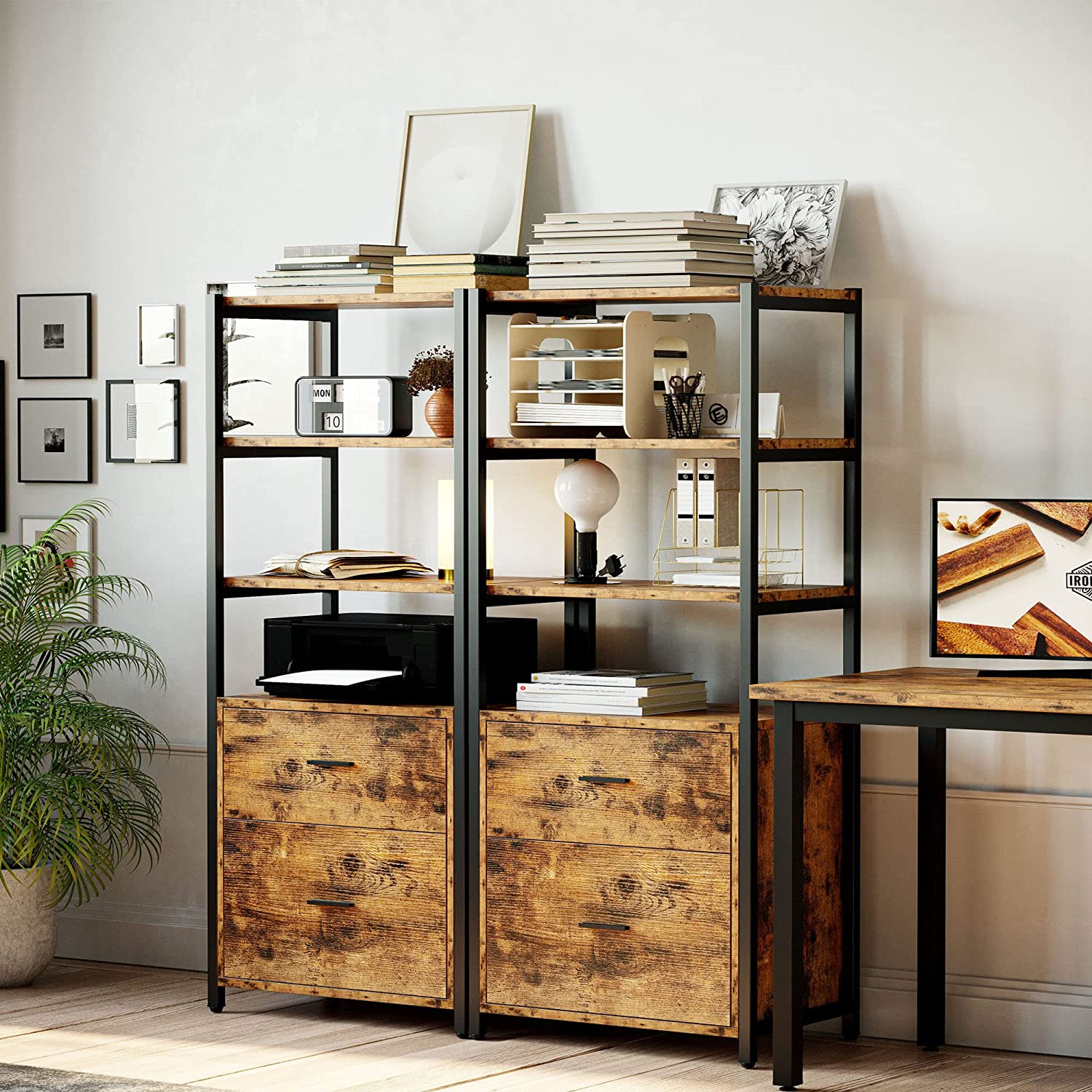 17 Stories 71 6 In Tall Industrial Bookcase With File Cabinet Drawers Reviews Wayfair